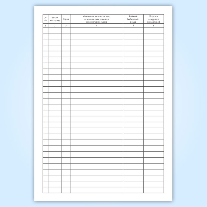 Журнал записи фамилий лиц, не сдавших светильники по окончании смены в Волгограде купить