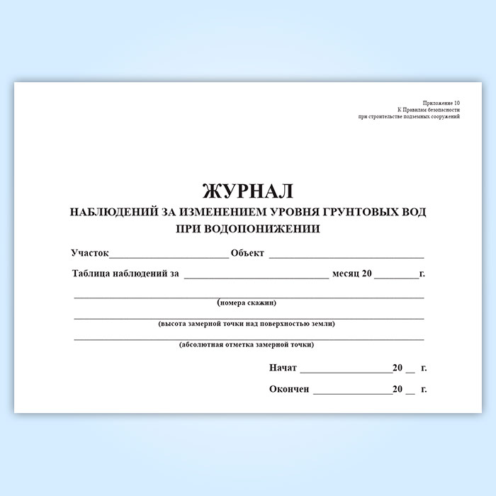 Журнал наблюдений за изменением уровня грунтовых вод при водопонижении в Волгограде купить