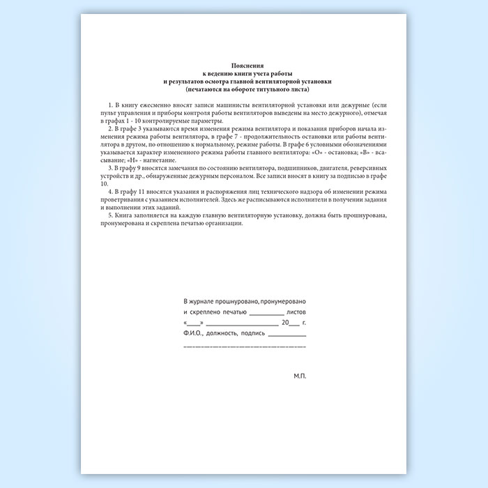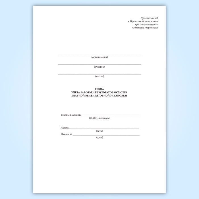 Книга учета работы и результатов осмотра главной вентиляторной установки в Волгограде купить