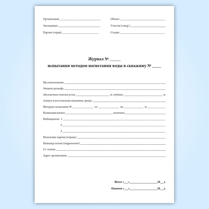Журнал испытания методом нагнетания воды в скважину в Волгограде купить