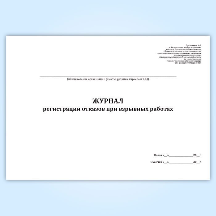 Журнал регистрации отказов при взрывных работах в Волгограде купить