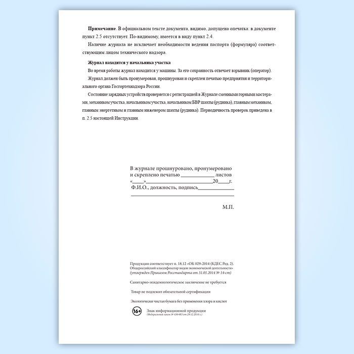 Вы получаете печатную продукцию прошнурованной и c местом для вашей печати в соответствии с действующими нормативными документами: