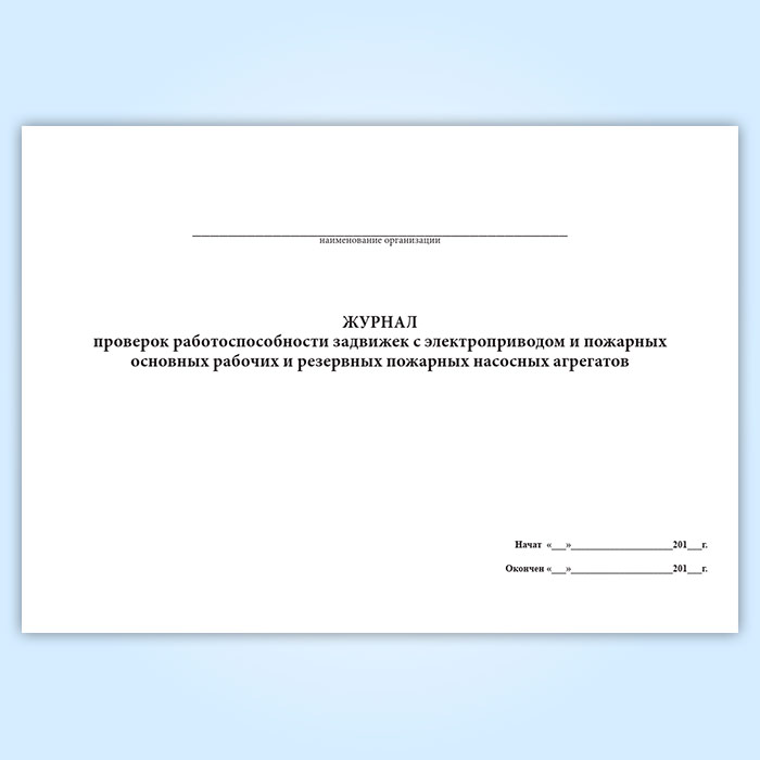 Журнал проверок работоспособности задвижек с электроприводом и пожарных основных рабочих и резервных пожарных насосных агрегатов в Волгограде купить