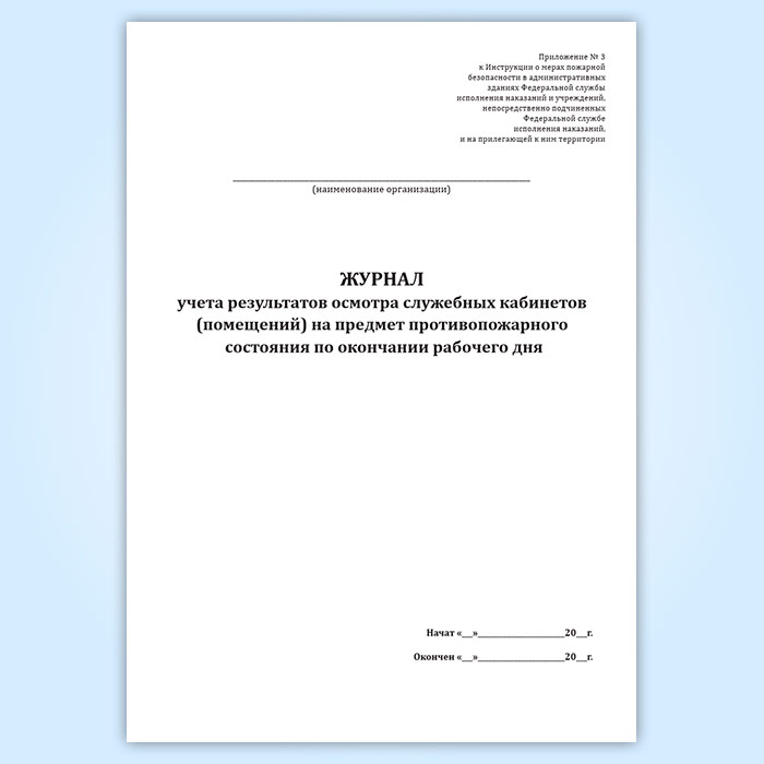 Журнал учета результатов осмотра служебных кабинетов (помещений) на предмет противопожарного состояния по окончании рабочего дня в Волгограде купить