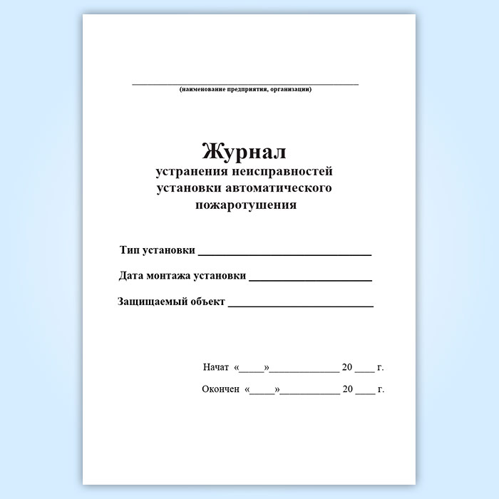 Журнал устранения неисправностей установки автоматического пожаротушения в Волгограде купить