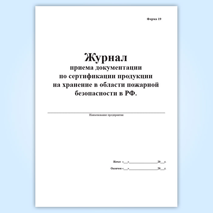 Журнал приема документации по сертификации продукции на хранение в области пожарной безопасности в РФ (форма 19) в Волгограде купить