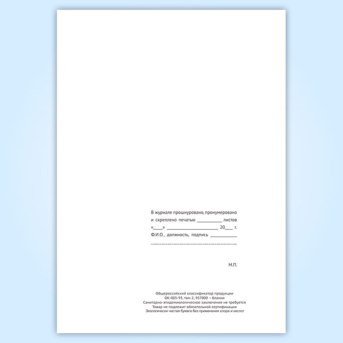 Вы получаете печатную продукцию прошнурованной и c местом для вашей печати в соответствии с действующими нормативными документами:
