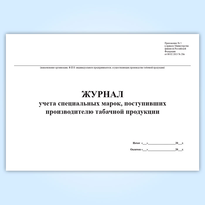 Журнал учета специальных марок, поступивших производителю табачной продукции в Волгограде купить