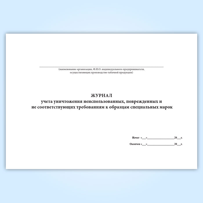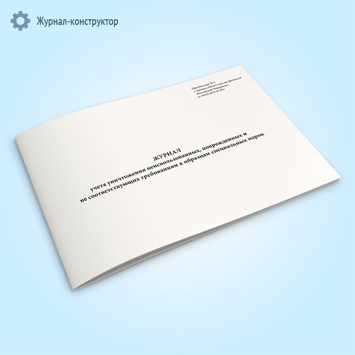 Журнал учета уничтожения неиспользованных, поврежденных и не соответствующих требованиям к образцам специальных марок в Волгограде купить