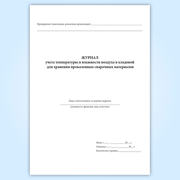Журнал учета температуры и влажности воздуха в кладовой для хранения прокаленных сварочных материалов в Волгограде купить