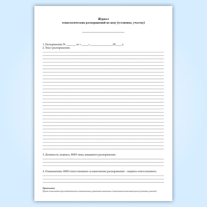 Журнал технологических распоряжений по цеху (установке, участку) в Волгограде купить