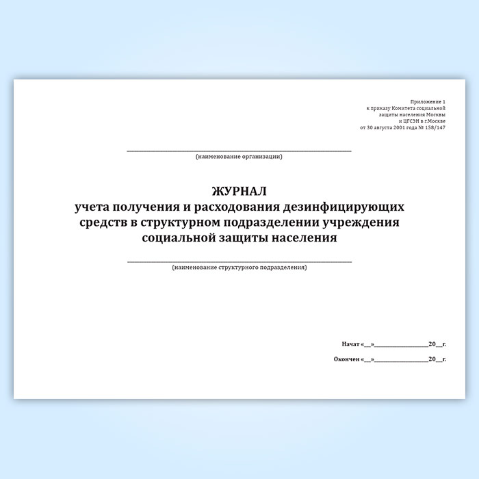 Журнал учета получения и расходования дезинфицирующих средств в структурном подразделении учреждения социальной защиты населения в Волгограде купить