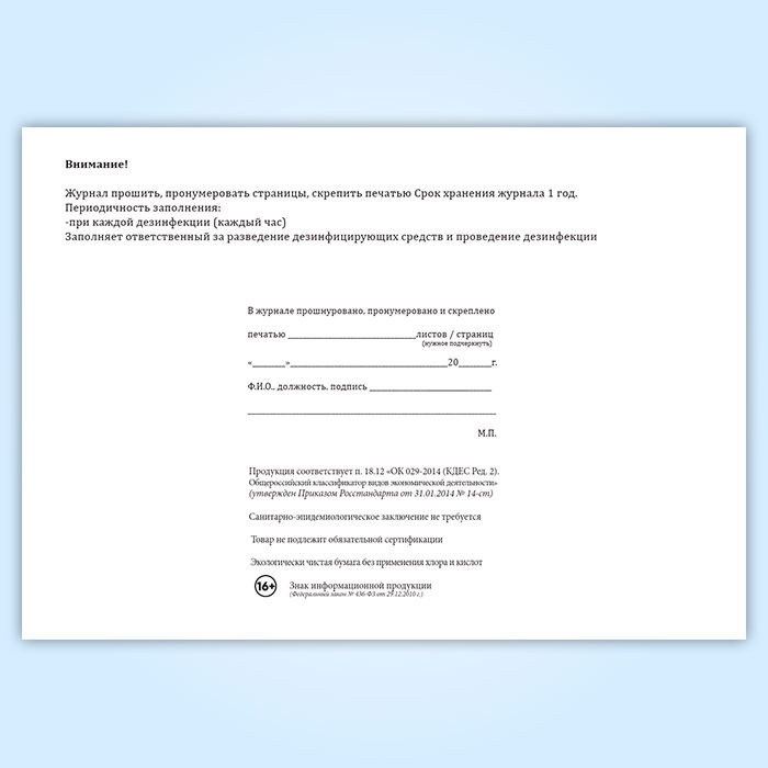 Журнал учета дезинфекций поверхностей в рамках профилактики распространения коронавирусной инфекции COVID-19 в Волгограде купить