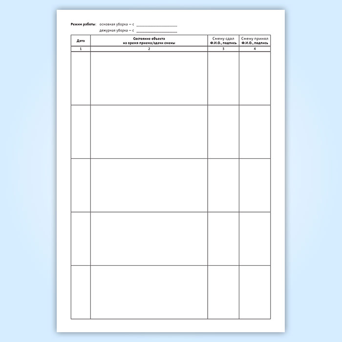 Журнал приема-сдачи смен (для уборки помещения) в Волгограде купить