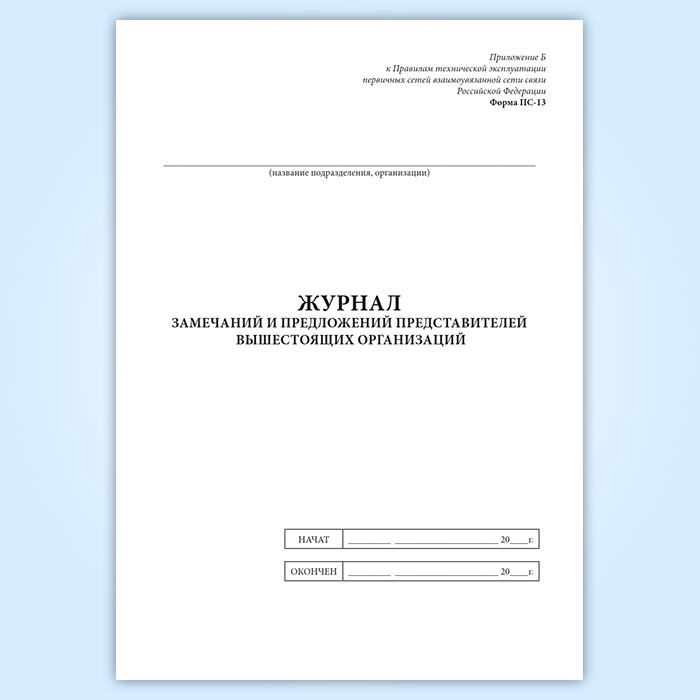 Журнал замечаний и предложений представителей вышестоящих организаций (форма ПС-13) в Волгограде купить