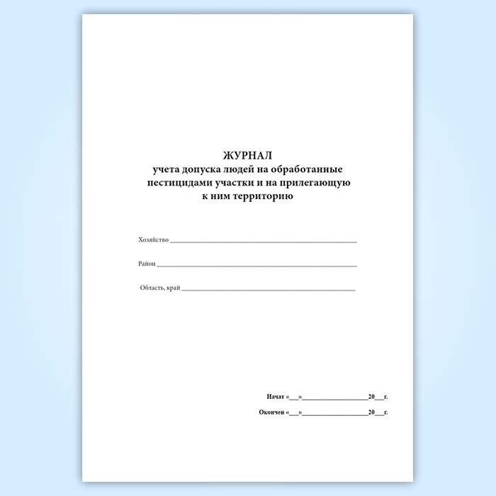Журнал учета допуска людей на обработанные пестицидами участки и на прилегающую к ним территорию в Волгограде купить