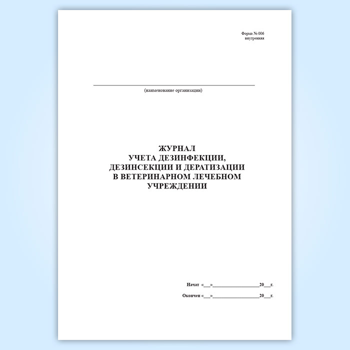 Журнал учета дезинфекции ветеринарного лечебного подразделения (форма № 006 вн.) в Волгограде купить