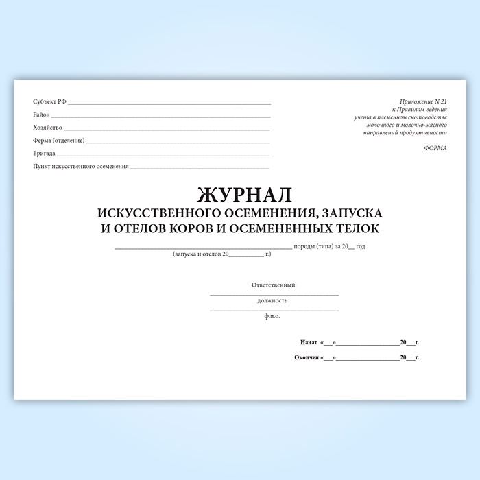 Журнал искусственного осеменения, запуска и отелов коров и осемененных телок в Волгограде купить