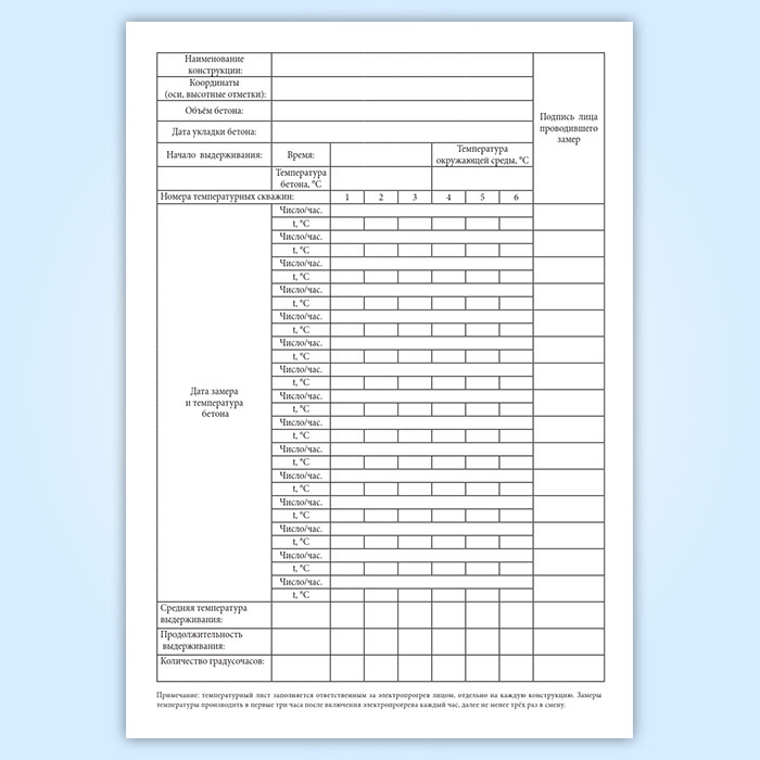 Журнал регистрации температуры бетона в монолитных конструкциях в Волгограде купить