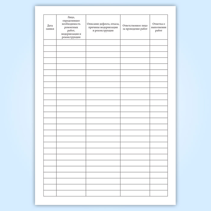 Журнал заявок на проведение ремонтных работ, работ по модернизации, реконструкции в Волгограде купить