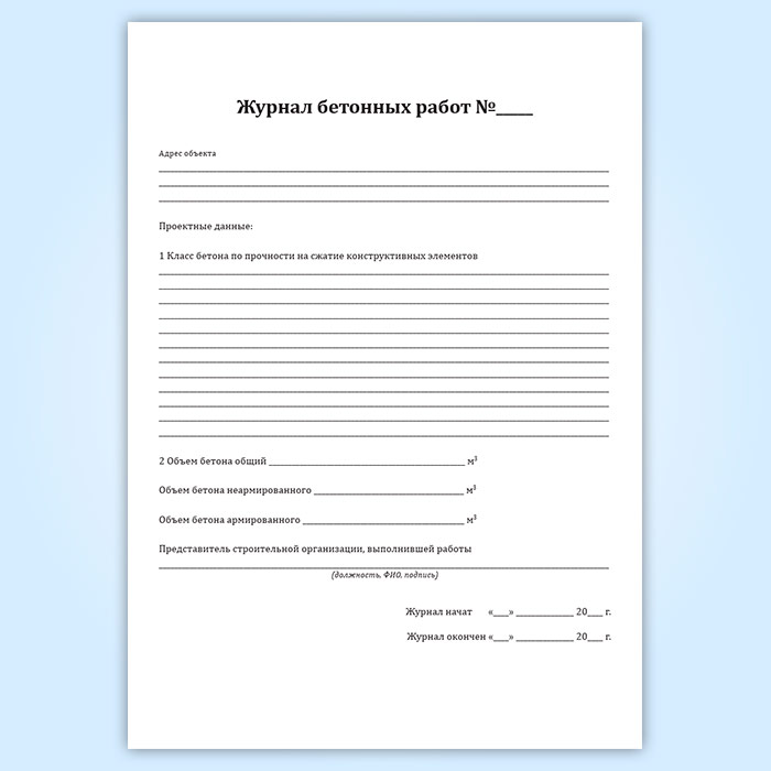 Журнал бетонных работ (форма 12.1, СП 392.1325800.2018) в Волгограде купить