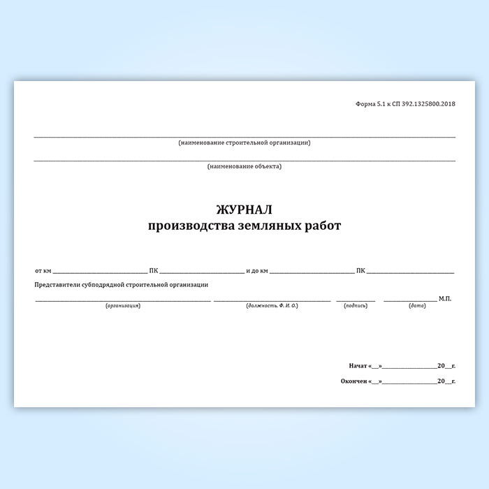 Журнал производства земляных работ (форма 5.1) в Волгограде купить