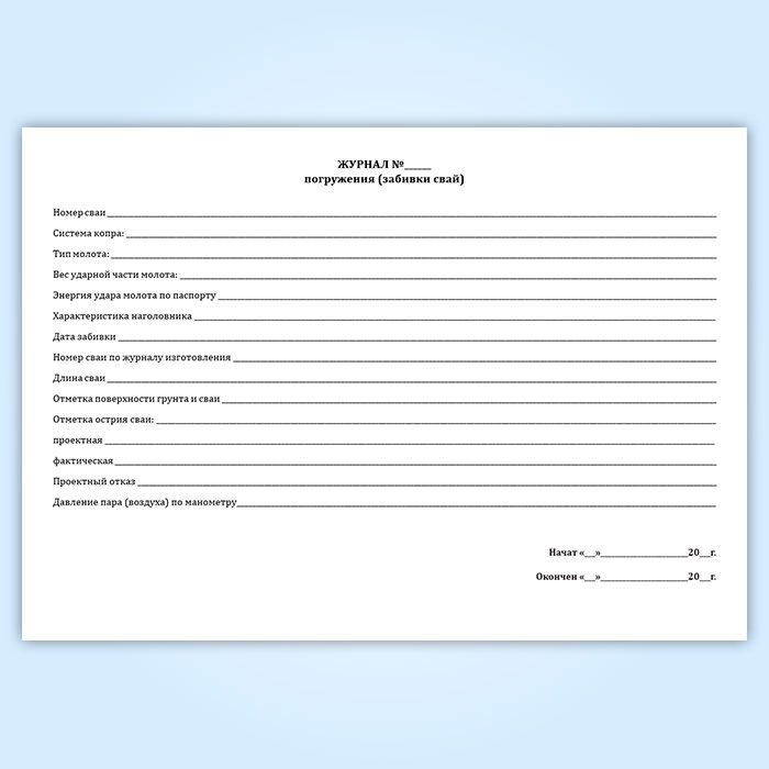 Журнал погружения (забивки свай) (форма 4.1) в Волгограде купить
