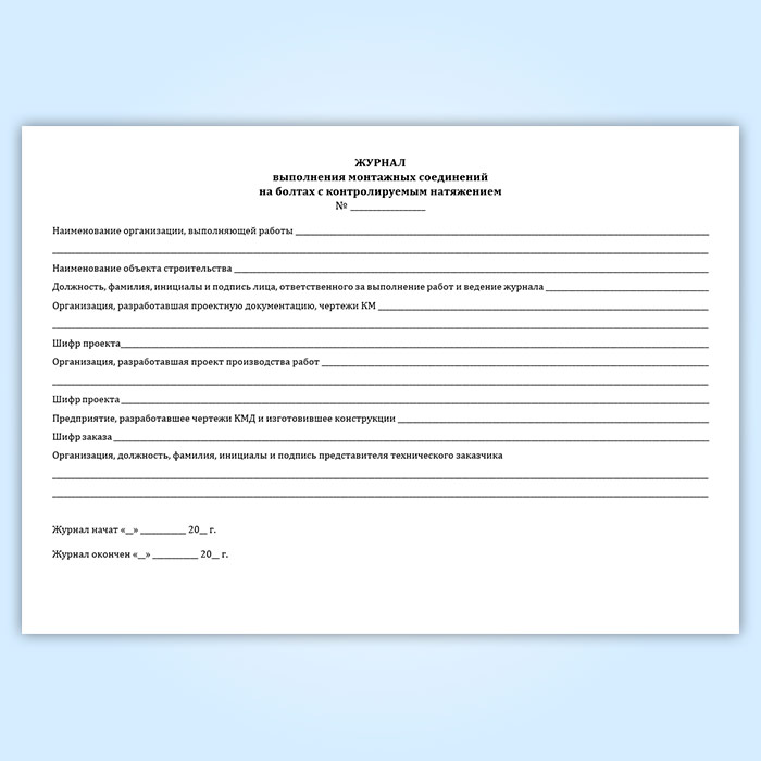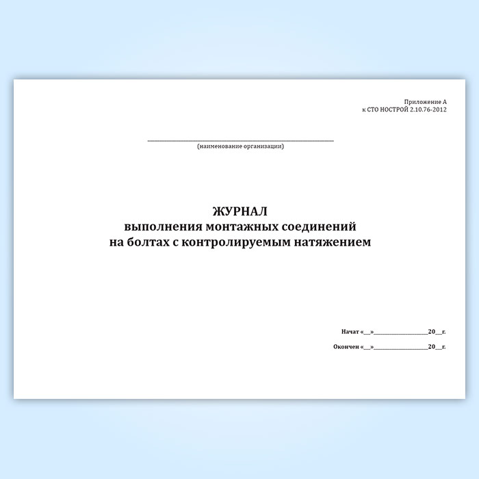 Журнал выполнения монтажных соединений на болтах с контролируемым натяжением (СТО НОСТРОЙ 2.10.76-2012) в Волгограде купить