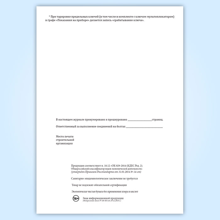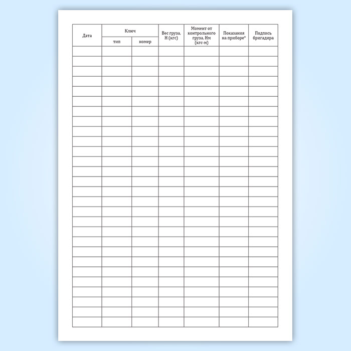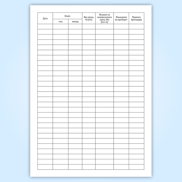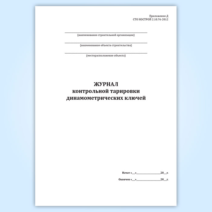 Журнал контрольной тарировки динамометрических ключей (СТО НОСТРОЙ 2.10.76-2012) в Волгограде купить