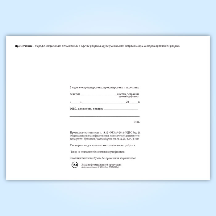 Вы получаете печатную продукцию прошнурованной и c местом для вашей печати в соответствии с действующими нормативными документами: