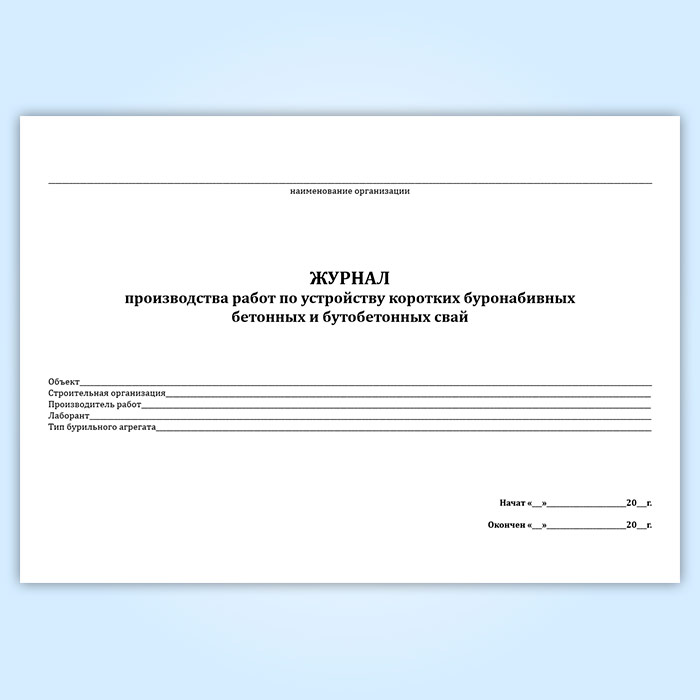 Журнал производства работ по устройству коротких буронабивных бетонных и бутобетонных свай в Волгограде купить
