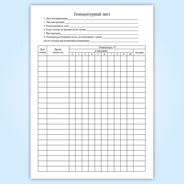 Журнал ухода за бетоном (с графиком продолжительности твердения) в Волгограде купить