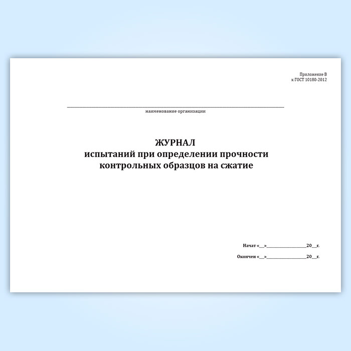 Журнал испытаний при определении прочности контрольных образцов на сжатие в Волгограде купить