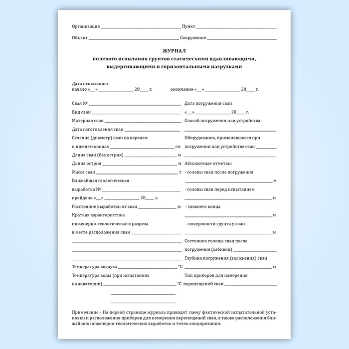 Журнал полевого испытания грунтов статическими вдавливающими, выдергивающими и горизонтальными нагрузками в Волгограде купить