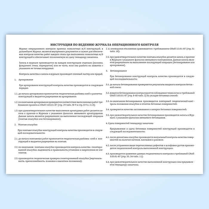 Журнал операционного контроля приемки монолитных железобетонных конструкций в Волгограде купить