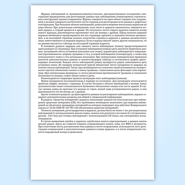 Журнал наблюдений за трещинами/швами/стыками, пространственным положением конструкций (для одного объекта) в Волгограде купить