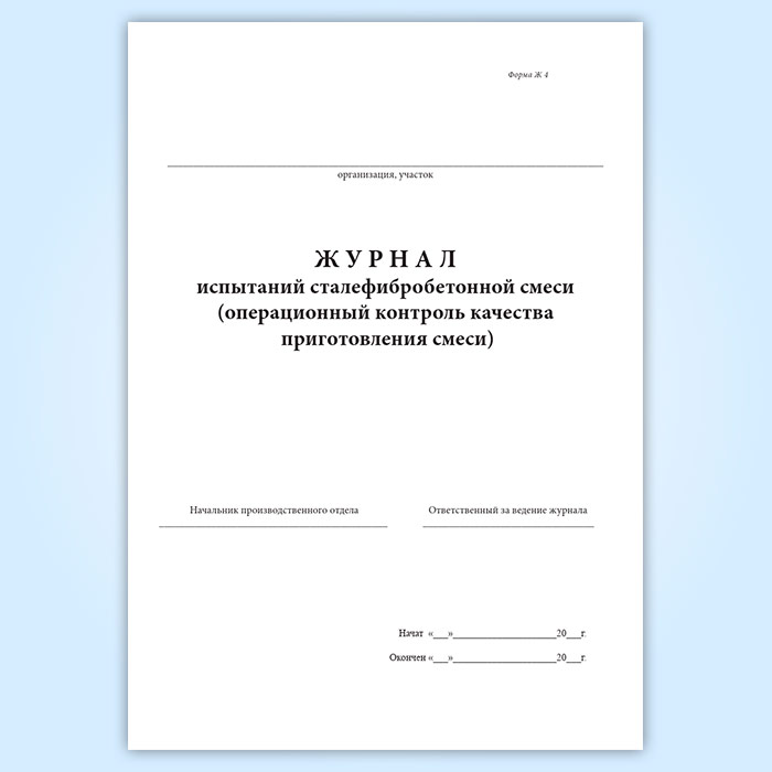 Журнал испытаний сталефибробетонной смеси (операционный контроль качества приготовления смеси) (форма Ж 4) в Волгограде купить