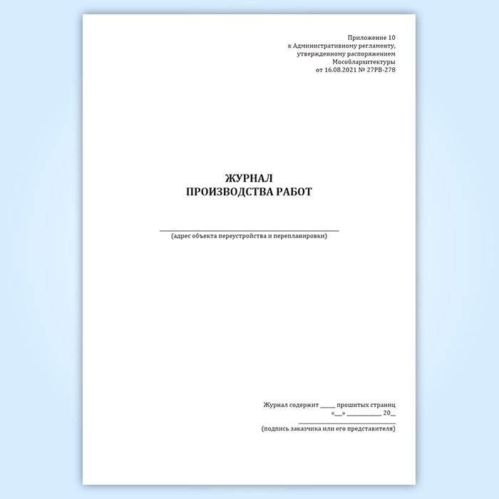 Журнал производства работ (Распоряжение Мособлархитектуры МО от 16.08.2021 N 27РВ-278) в Волгограде купить
