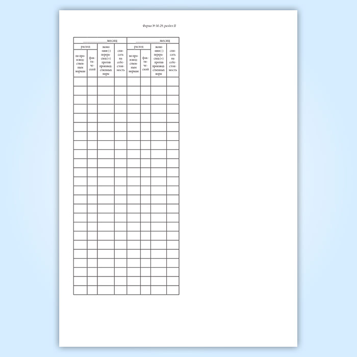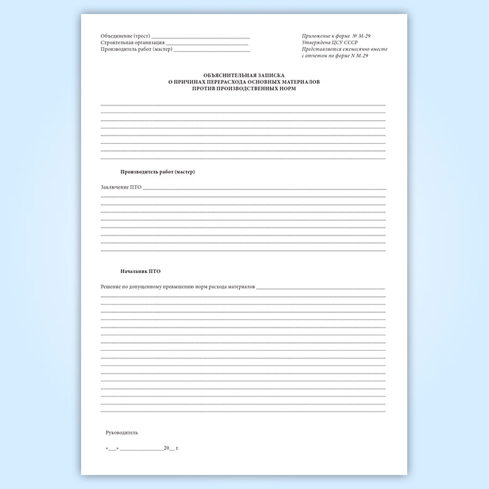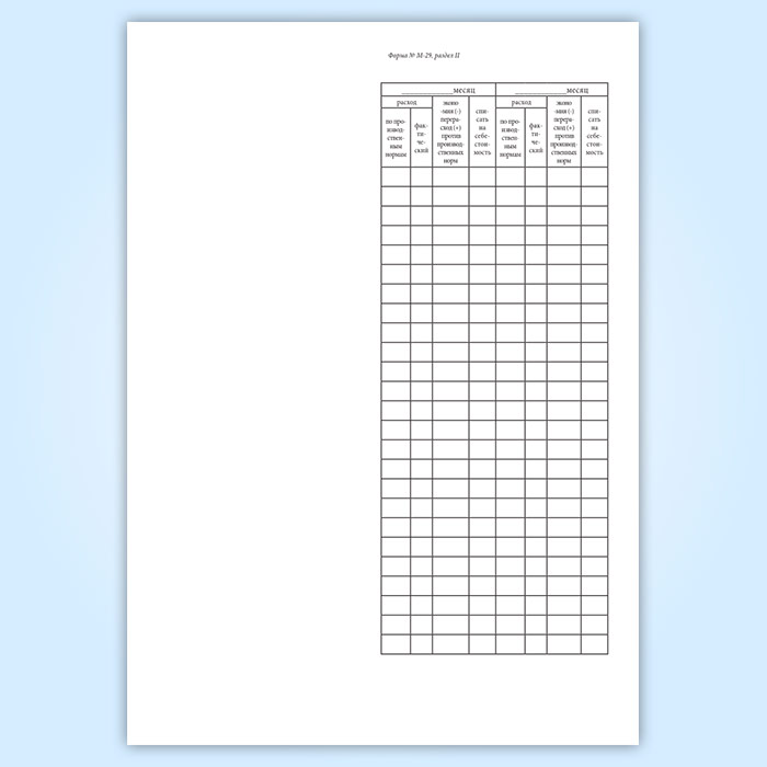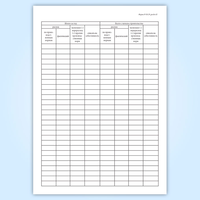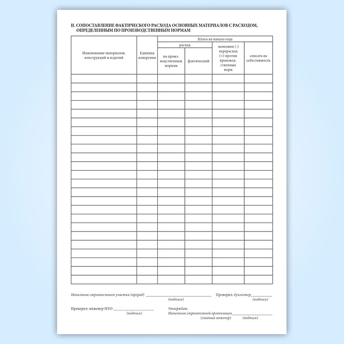 Отчет о расходе основных материалов в строительстве в сопоставлении с расходом, определенным по производственным нормам (форма М-29) в Волгограде купить