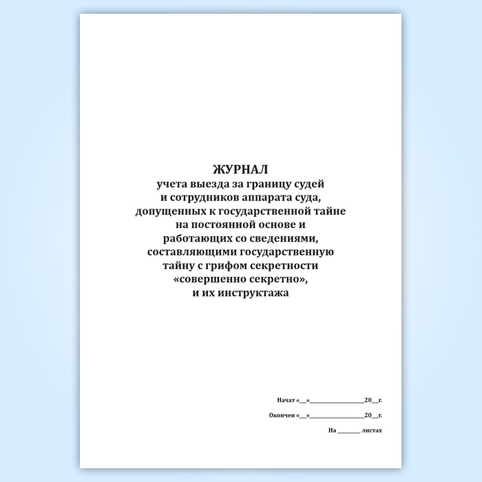 Журнал учета выезда за границу судей и сотрудников аппарата суда, допущенных к государственной тайне на постоянной основе и работающих со сведениями, составляющими государственную тайну с грифом секретности «совершенно секретно», и их инструктажа в Волгограде купить