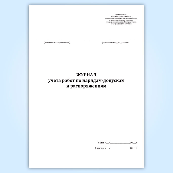 Журнал учета работ по нарядам-допускам и распоряжениям (для объектов теплоснабжения и теплопотребляющих установок) в Волгограде купить
