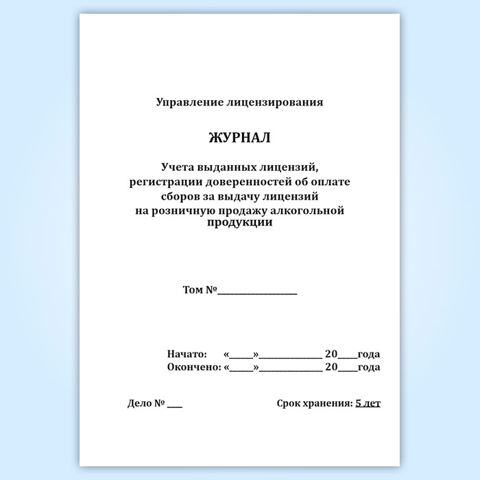 Журнал учета выданных лицензий, регистрации доверенностей об оплате сборов за выдачу лицензий на розничную продажу алкогольной продукции в Волгограде купить