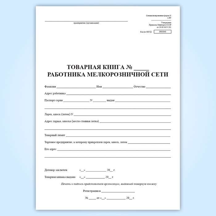 Товарная книга работника мелкорозничной сети. Специализированная (форма № 1-РТ) в Волгограде купить