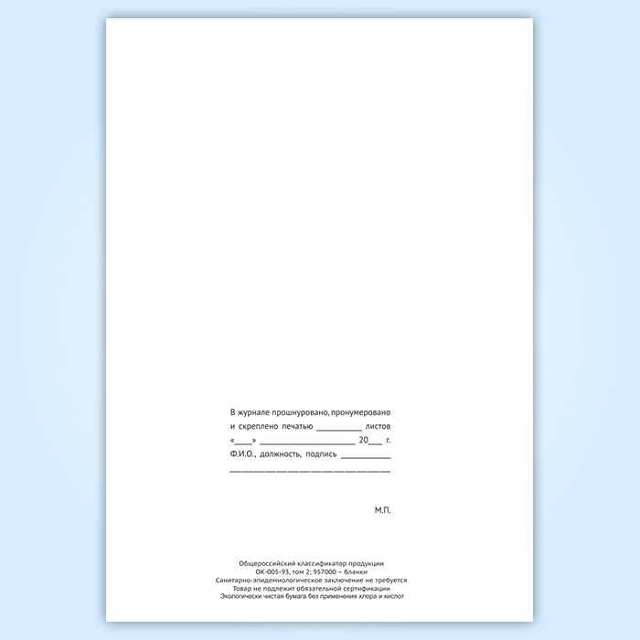 Вы получаете печатную продукцию прошнурованной и c местом для вашей печати в соответствии с действующими нормативными документами: