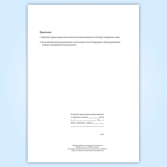 Бортовой журнал радиосвязи воздушного судна авиапредприятия в Волгограде купить