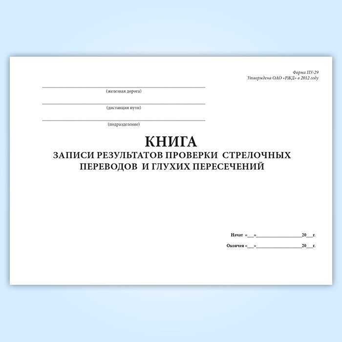 Книга записи результатов проверки стрелочных переводов и глухих пересечений (форма ПУ-29) в Волгограде купить