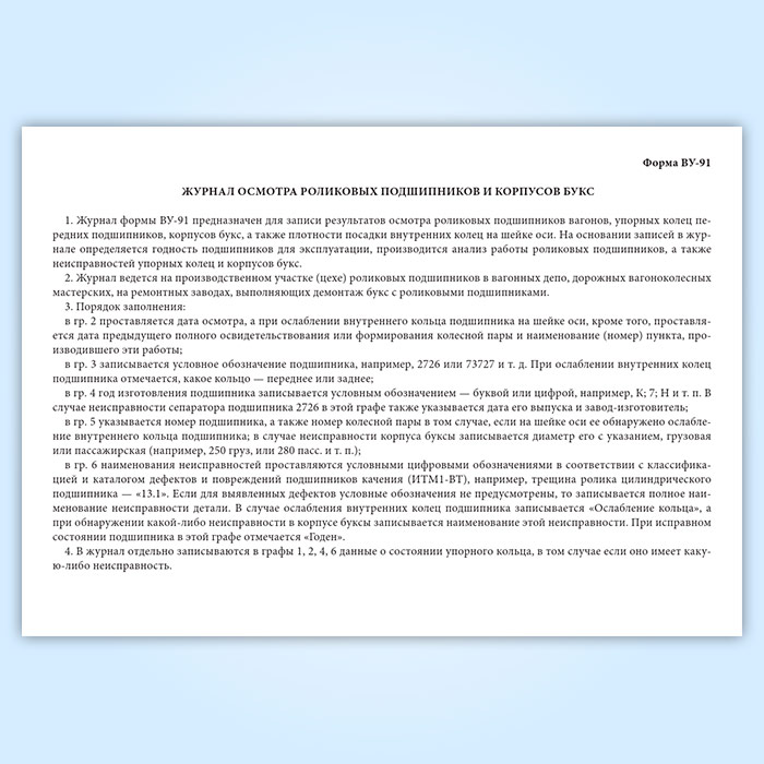 Журнал осмотра роликовых подшипников и корпусов букс (форма ВУ-91) в Волгограде купить
