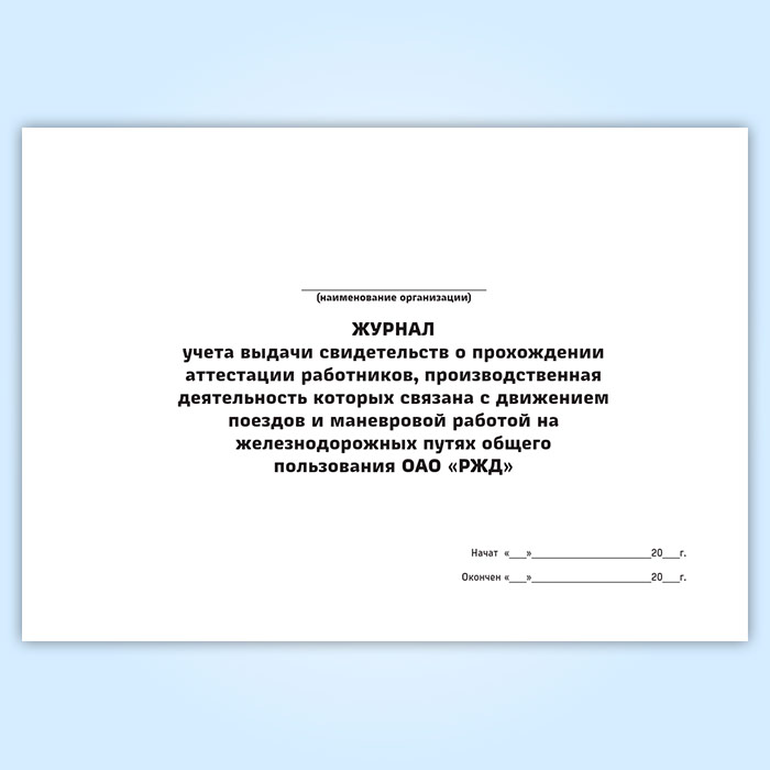 Журнал учета выдачи свидетельств о прохождении аттестации работников, производственная деятельность которых связана с движением поездов и маневровой работой на железнодорожных путях общего пользования ОАО «РЖД» в Волгограде купить