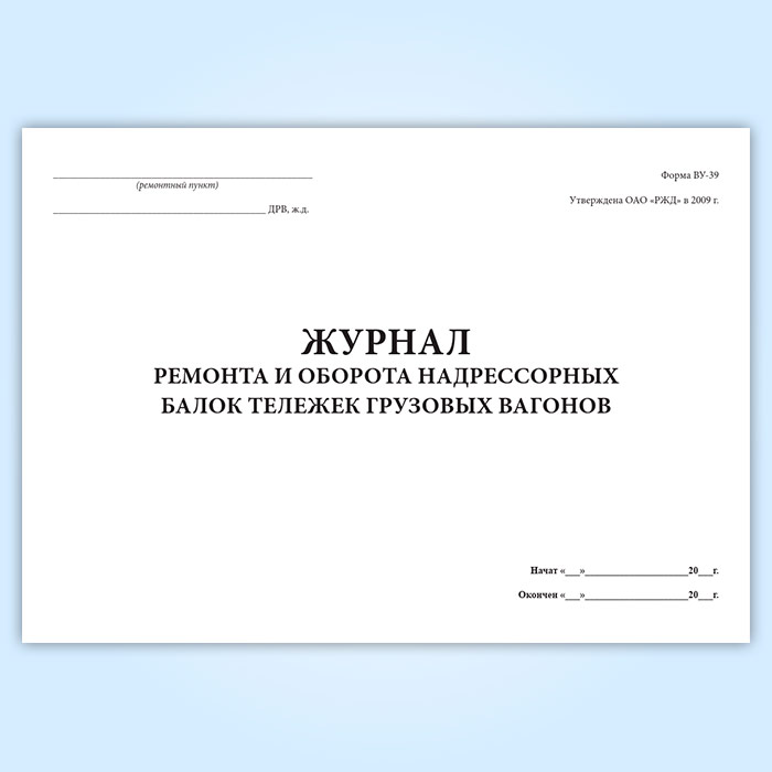 Журнал ремонта и оборота надрессорных балок тележек грузовых вагонов (форма ВУ-39) в Волгограде купить