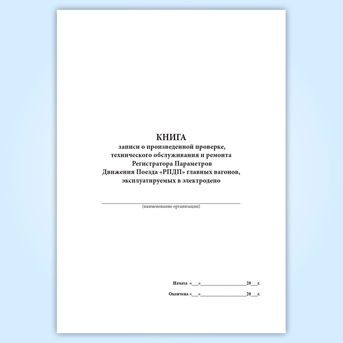 Книга записи о произведенной проверке, технического обслуживания и ремонта Регистратора Параметров Движения Поезда «РПДП» главных вагонов, эксплуатируемых в электродепо в Волгограде купить